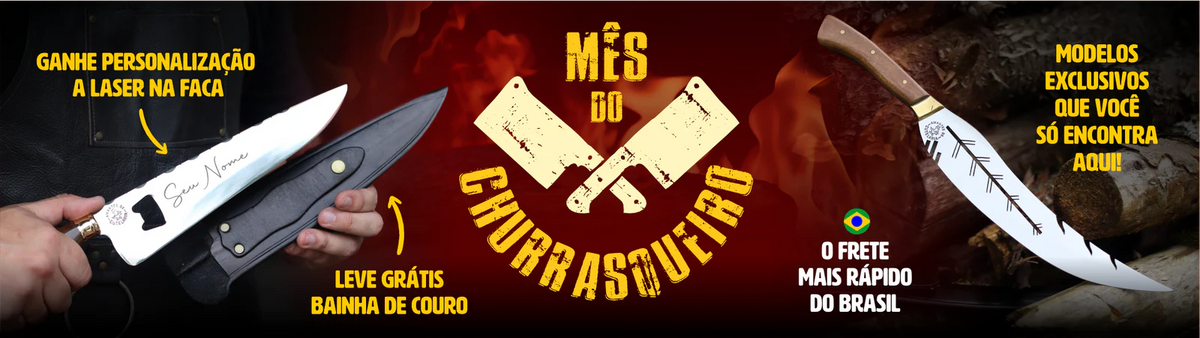 Faca Churrasco Artesanal Pai Churrasqueiro | Aço Inox e Cabo Nobre