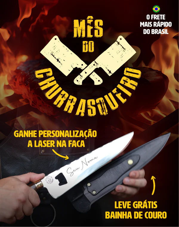 Faca Churrasco Artesanal Picanheira Mestre Churrasqueiro | Aço Inox 10"