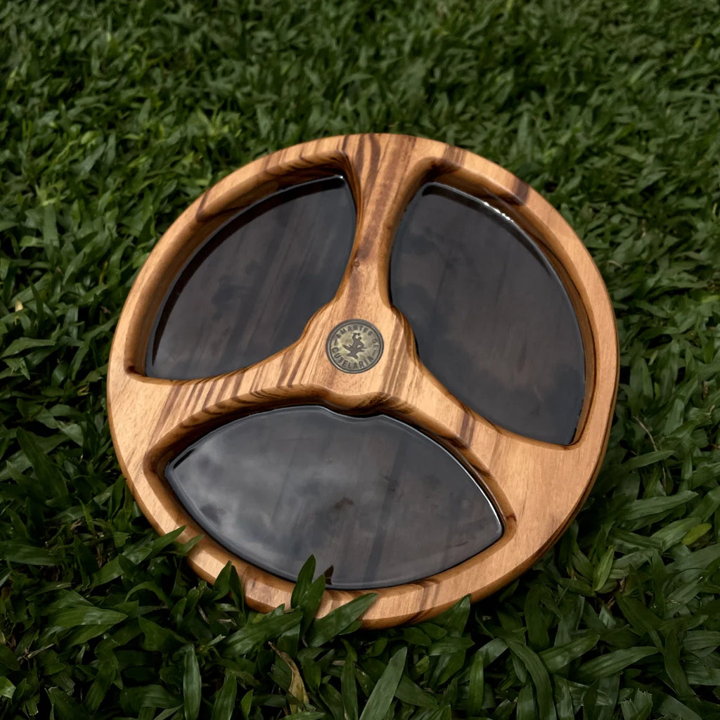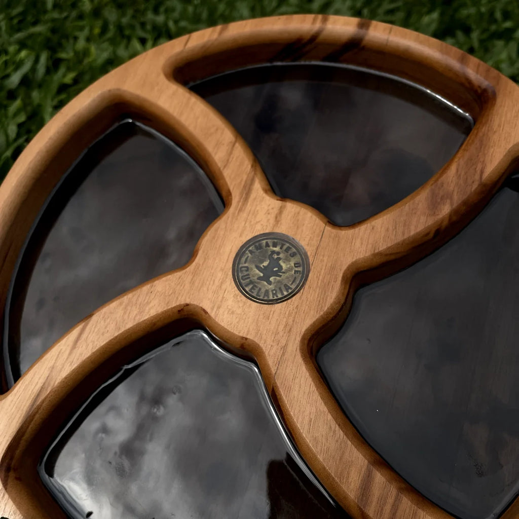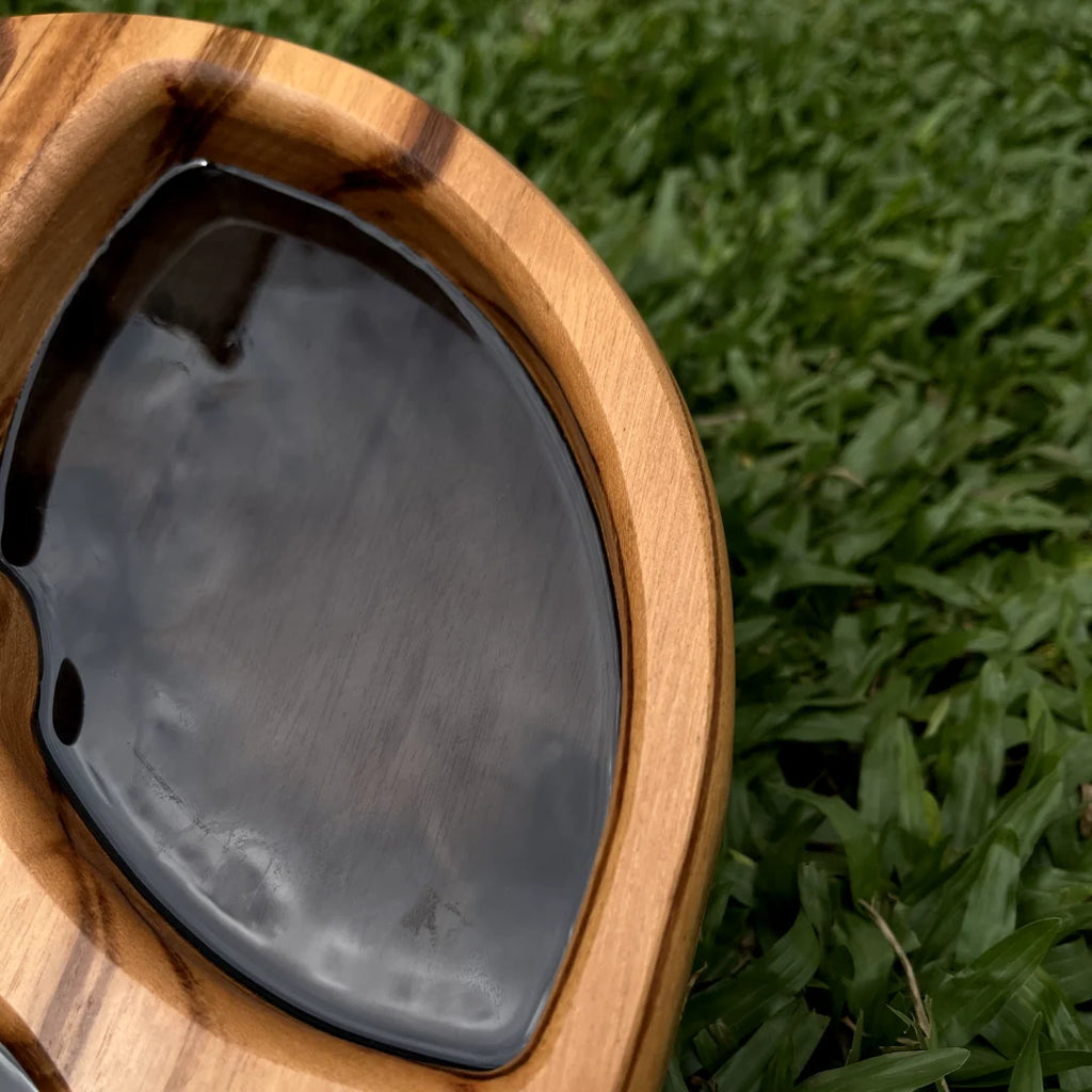 Produzido em Madeira de Muiracatira, com resina em suas divisórias.