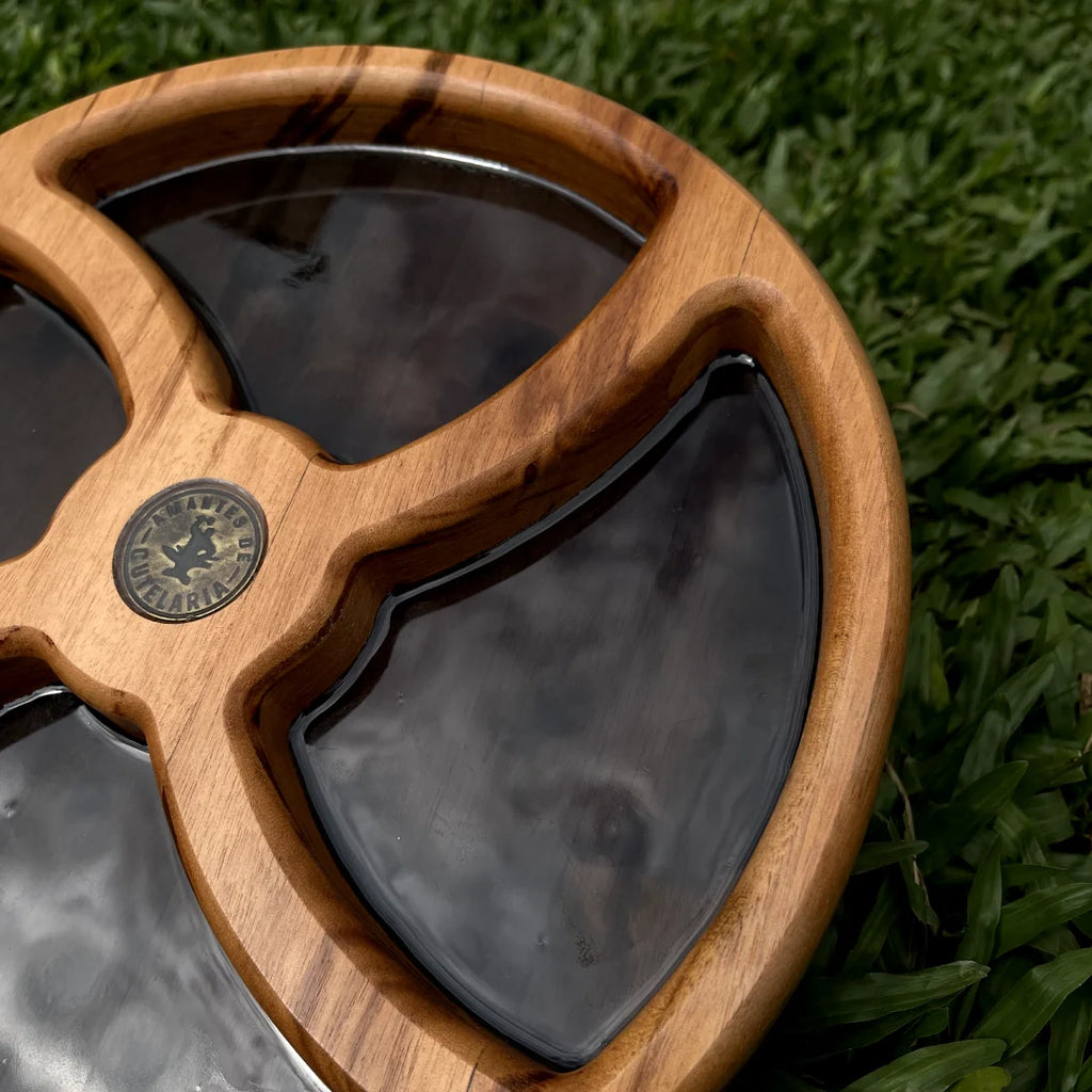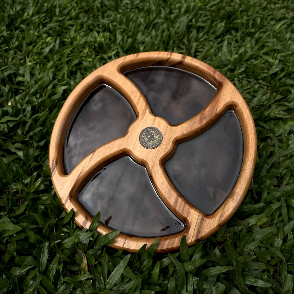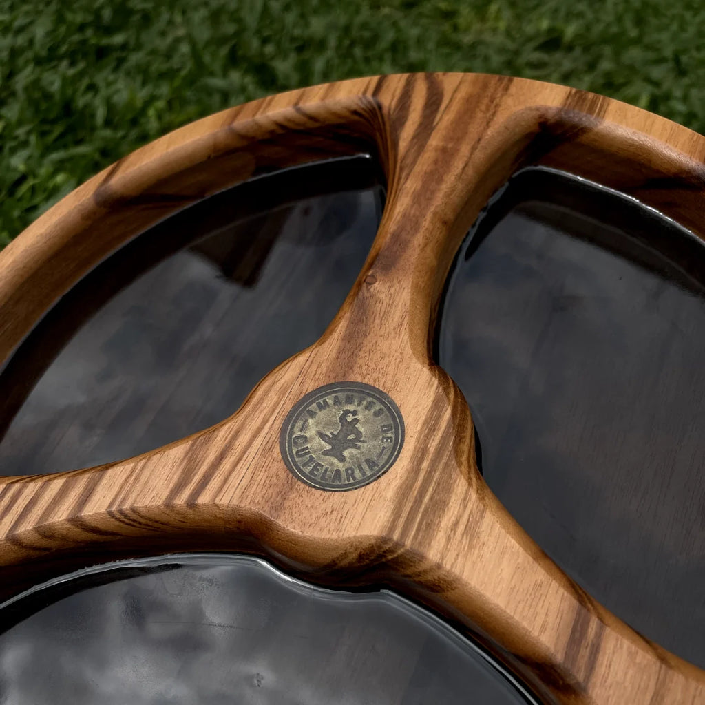 Produzido em Madeira de Muiracatira, com resina em suas divisórias.