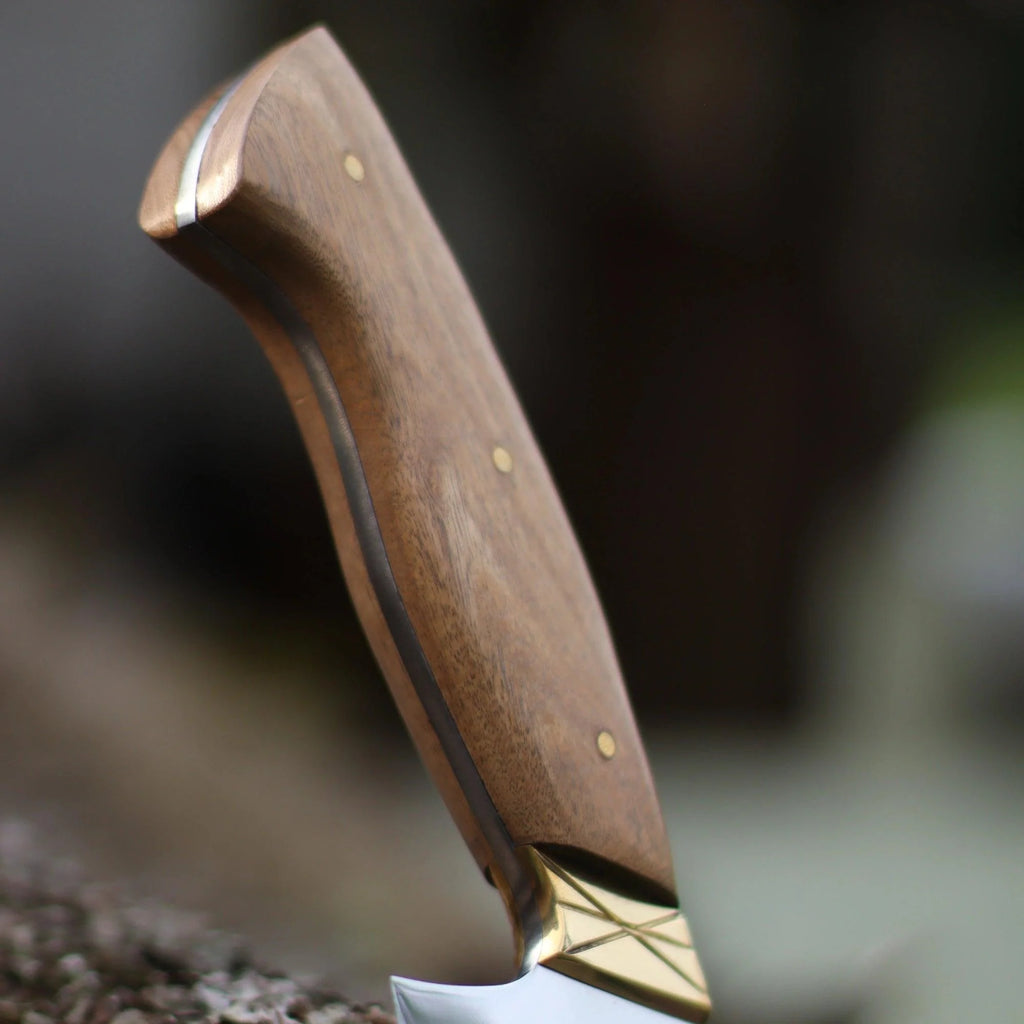 Cabo em Madeira Nobre (cor e textura podem conter pequenas variações por ser feita de maneira artesanal em matéria-prima natural).