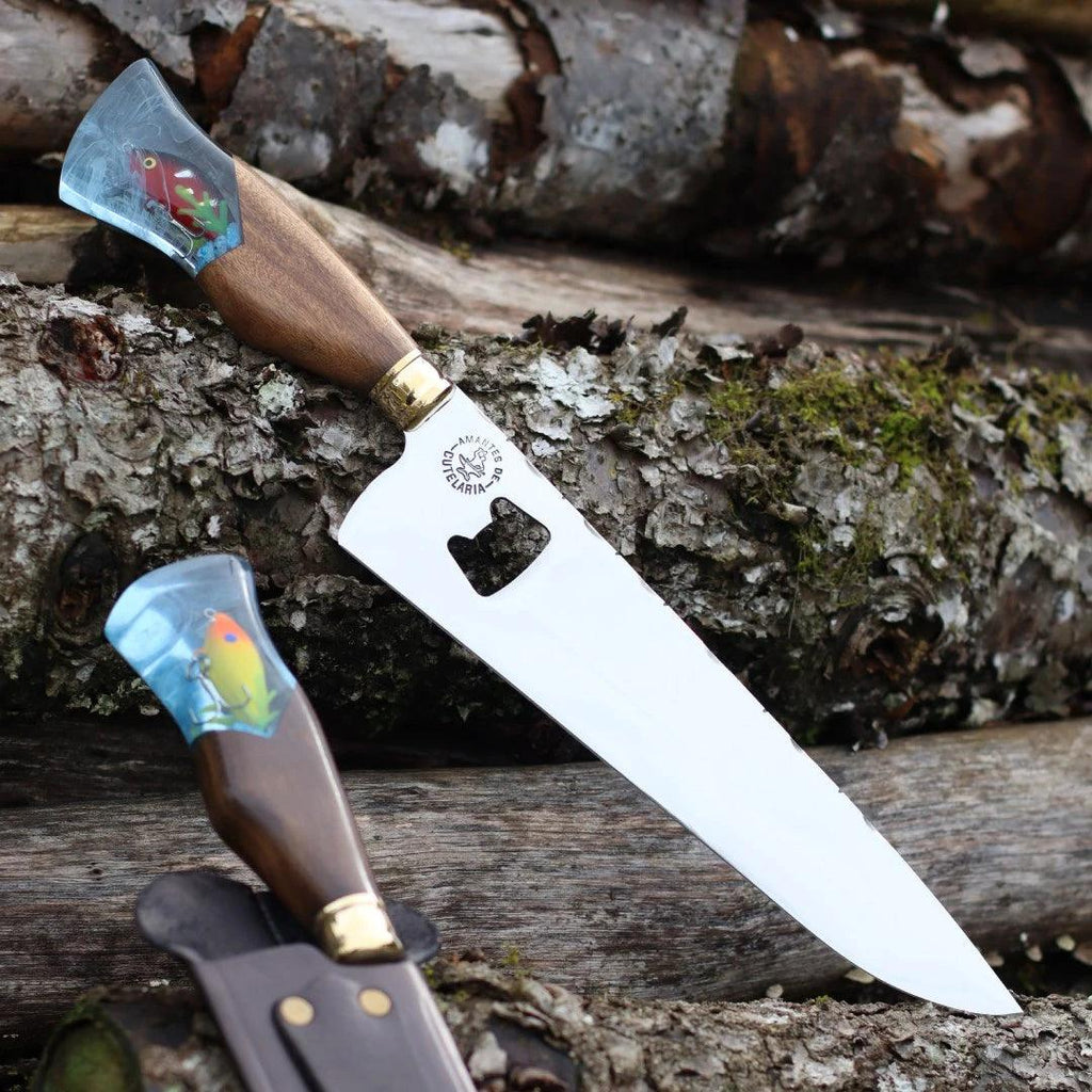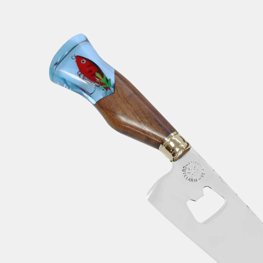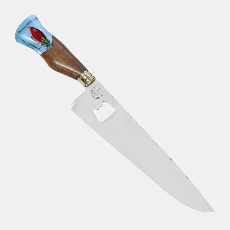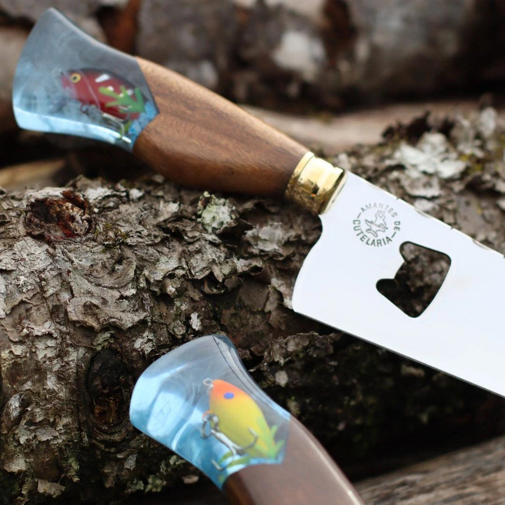 Cabo em Madeira Nobre e resina antibacteriana (cor e textura podem conter pequenas variações por ser feita de maneira artesanal em matéria-prima natural).