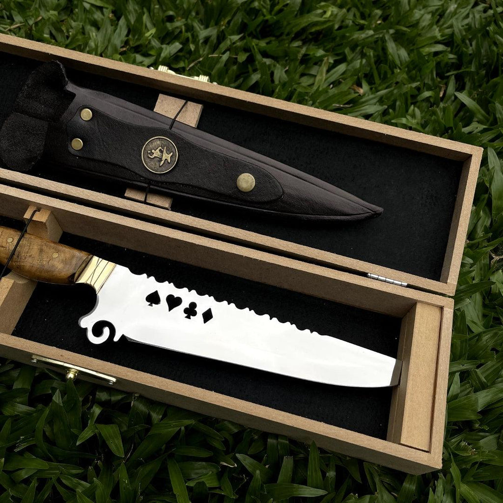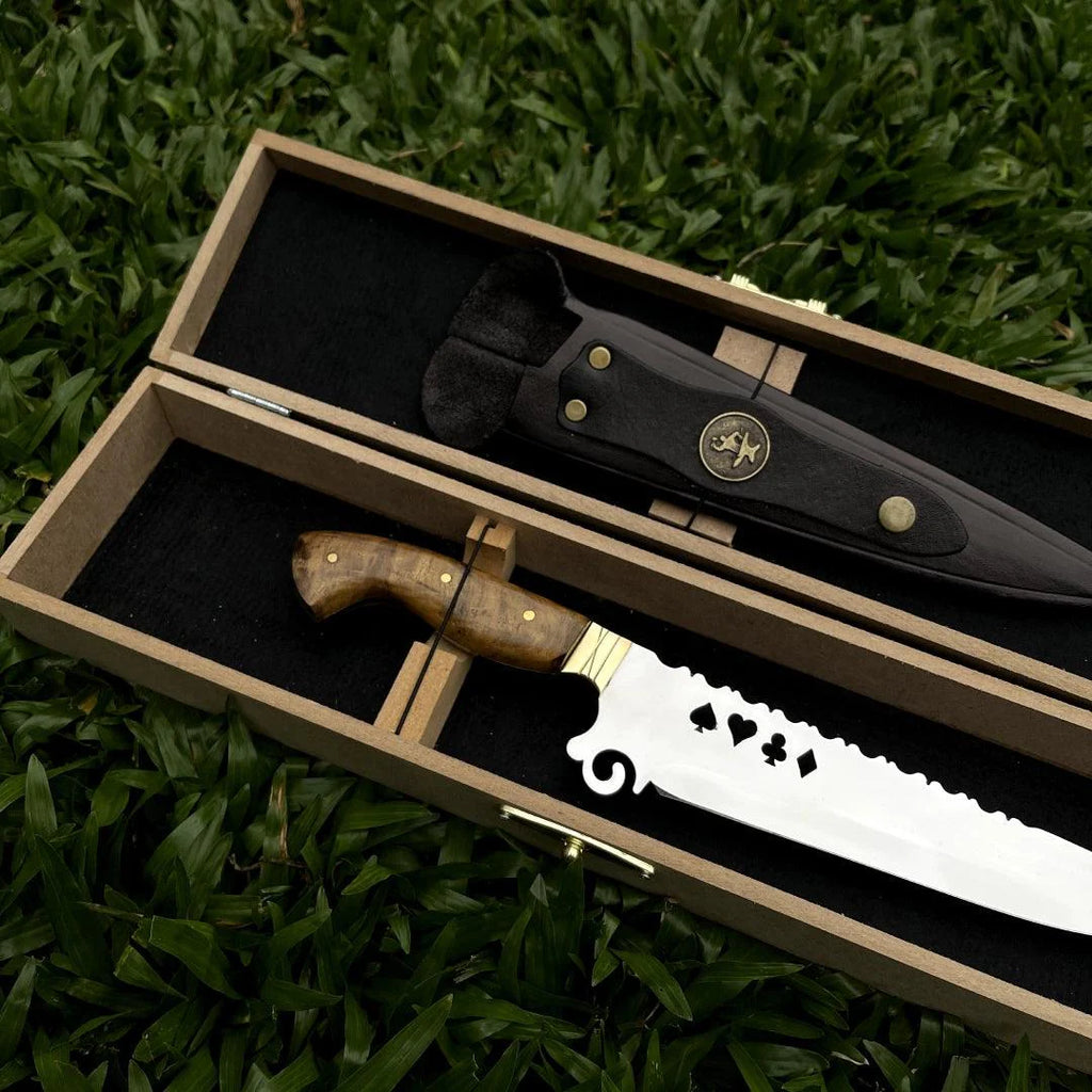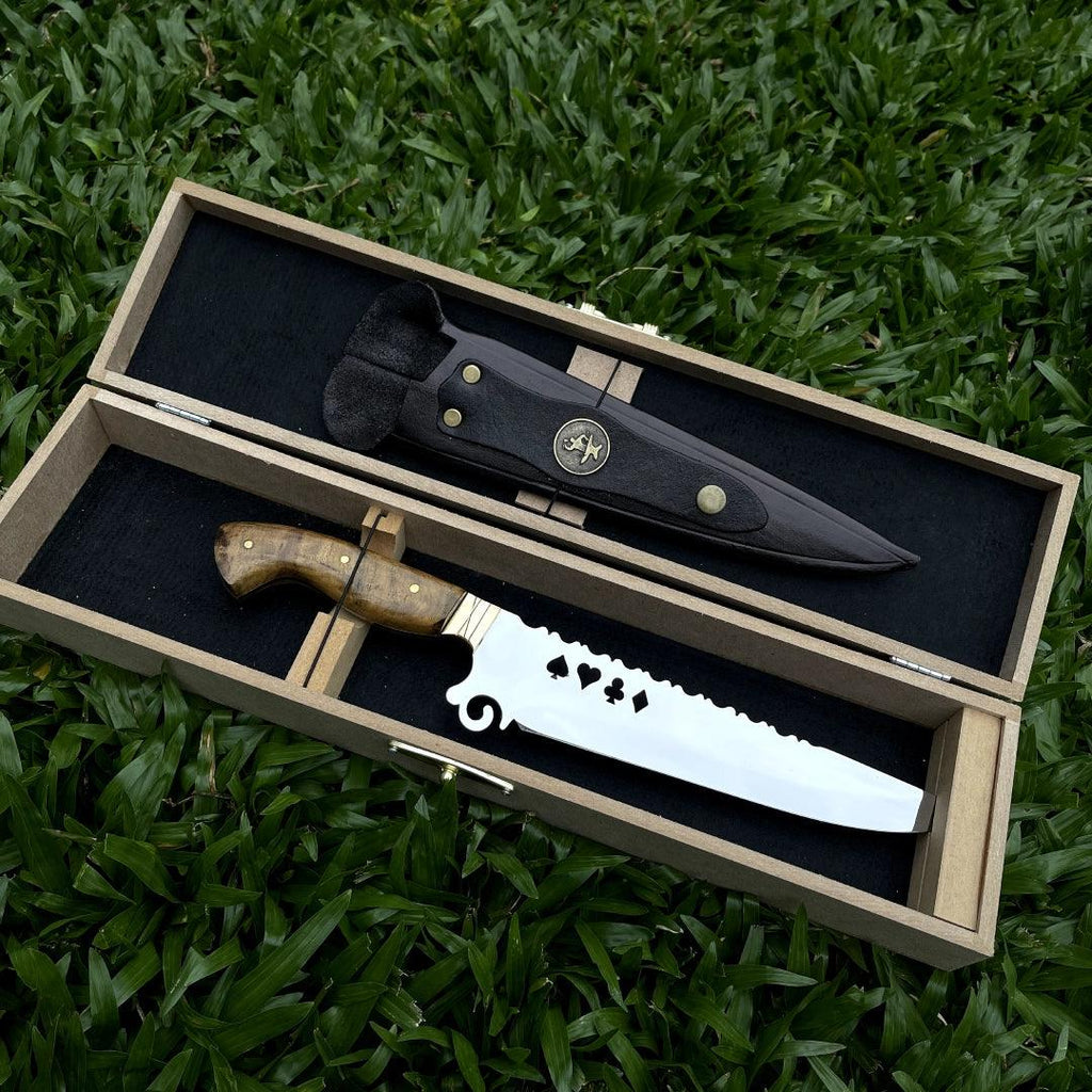 Faca Churrasco Artesanal Personalizada Cartas | Aço Inox 9"