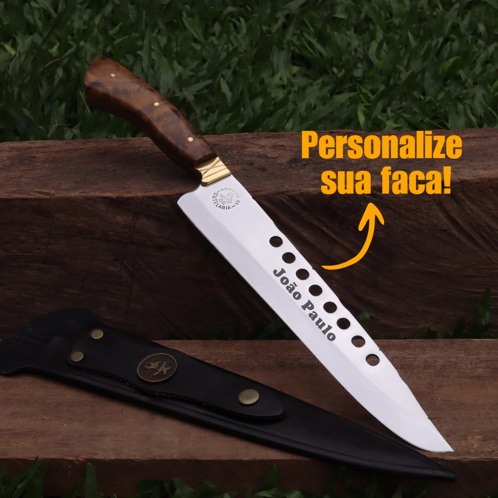 Faca Churrasco Artesanal Personalizada Furada | Aço Inox 10"
